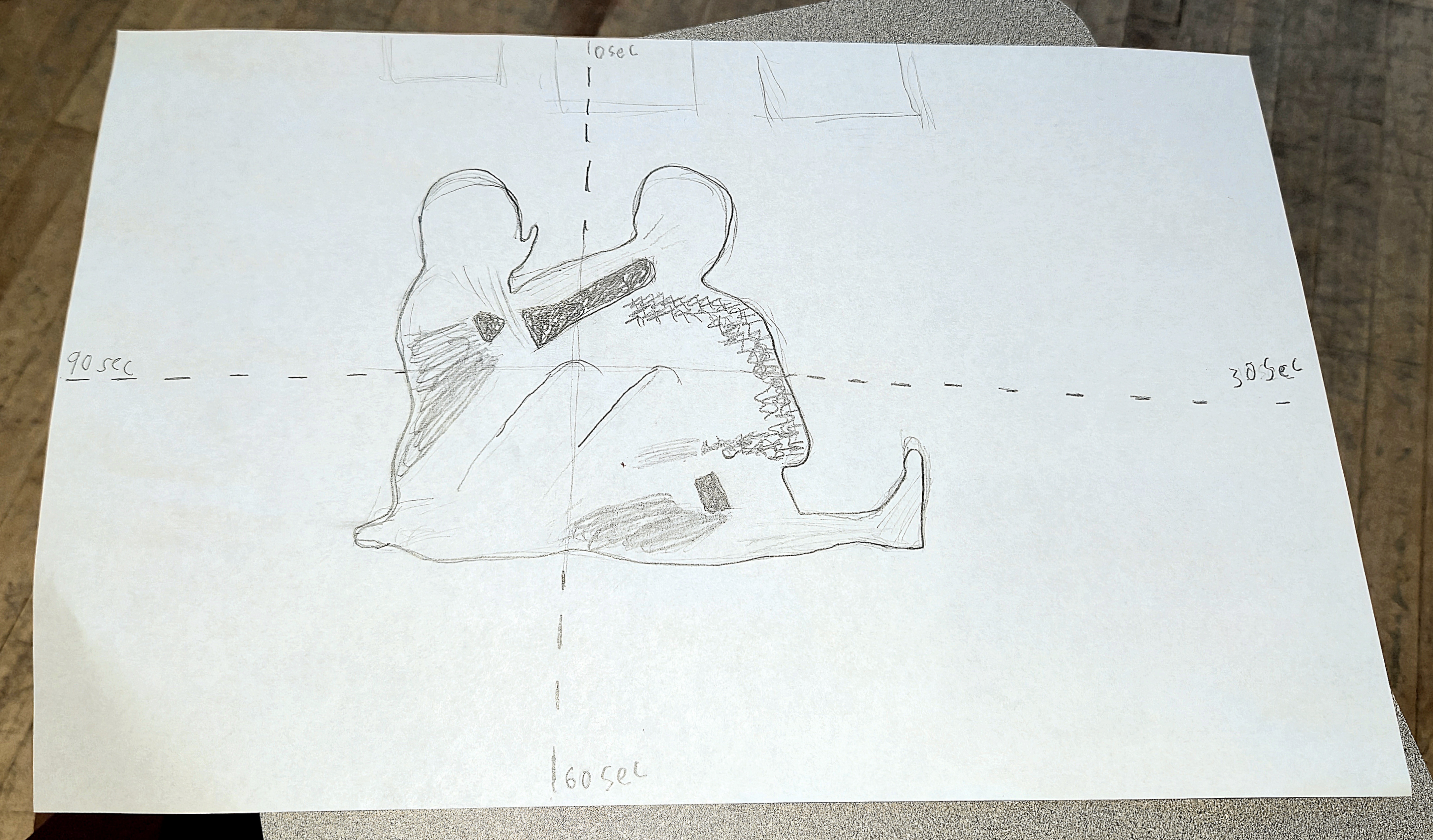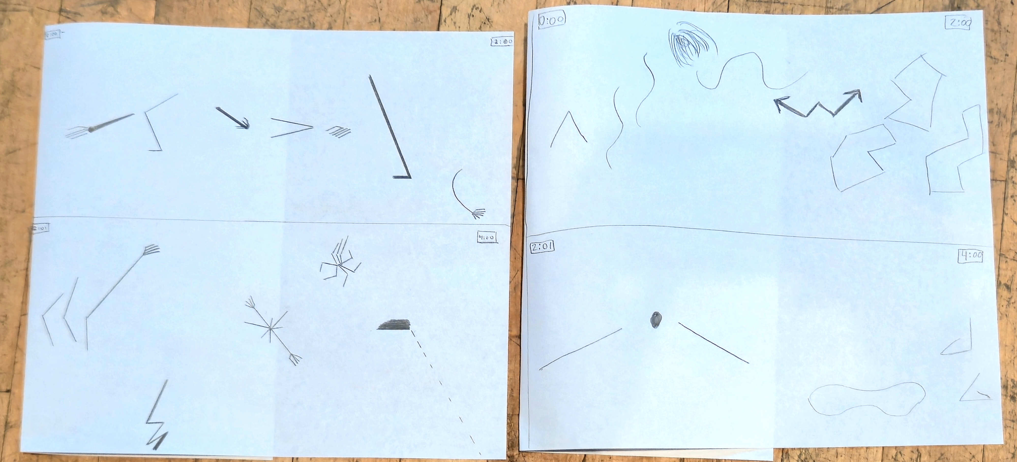 Body Mind Composition (2023) is a process to transform our perceptions and bodily interactions into a sequence of notated lines, patterns, shapes, and words. It explores tangible and intangible spaces between the conceptual, visual, sonic, and performative. Participants follow a set of text instructions, write their own graphical score, and interpret and enact events based on the score they create. It is a playful participatory project for creative collaboration and an embodied exercise in moving, listening, and seeing, holding space for one another.