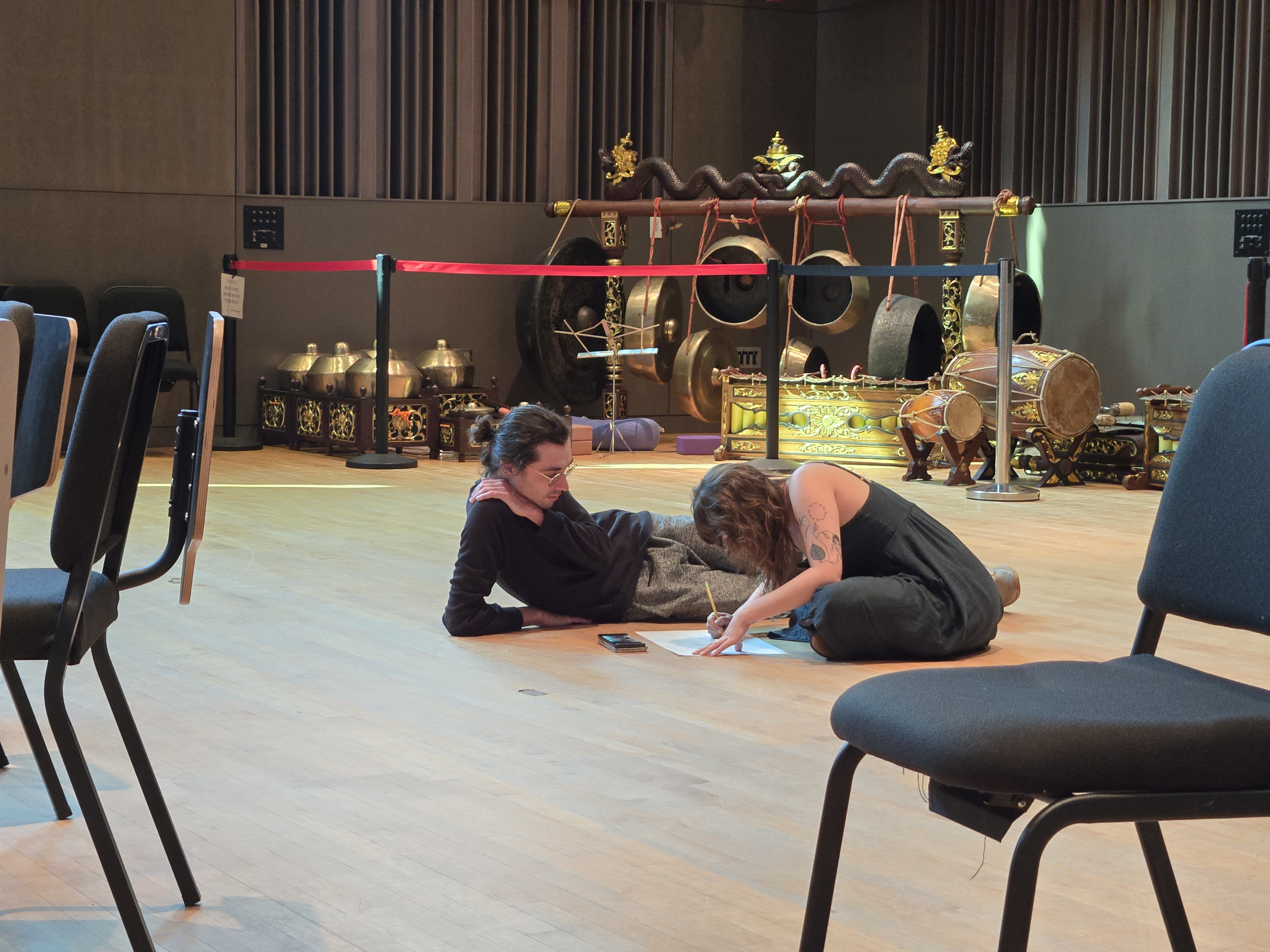 B O D Y M I N D C O M P O S I T I O N (2023) is a participatory project for collaboration — an embodied exercise in moving, listening, and seeing; in holding space for one another. It explores tangible and intangible spaces between the conceptual, visual, sonic, performative, and communicative. Participants have the chance to notate and perform their own graphical scores through a hands-on process.